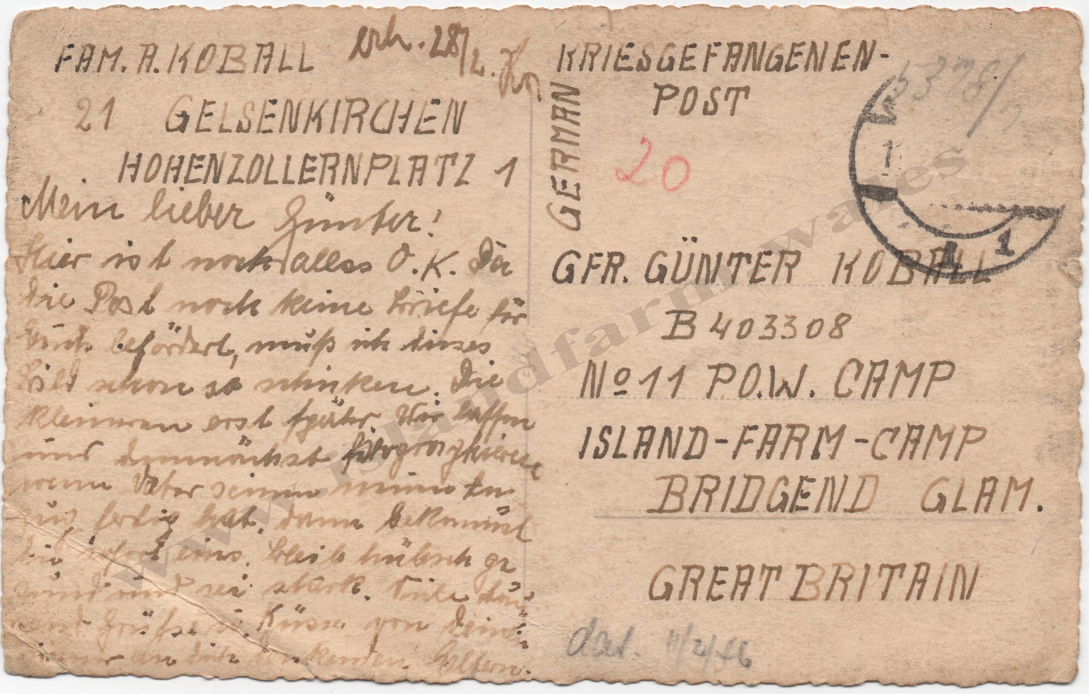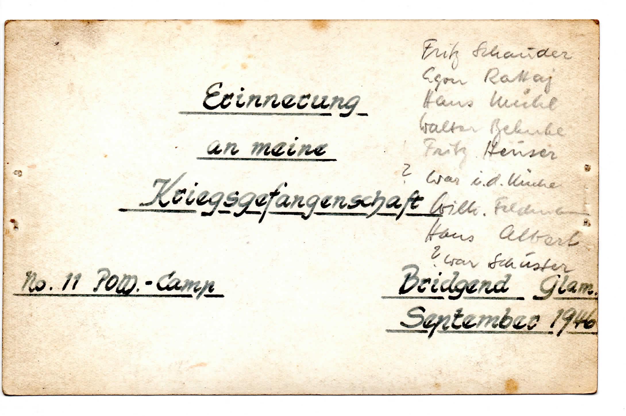 Notice how Günter Koball arrives at Camp 198 on the 2nd November 1944, however he isn't in Bridgend long before he is moved on the 1st December to Camp 181. After the escape of March 10/11th 1945 Günter Koball returns to Island Farm Camp 198 on the 3rd April 1945 to take up a new postion as an interpreter and chief-clerk at the accounts office aged 19 years. The camp becomes Island Farm Special Camp 11 on the 17th November 1945 and the first officers arrive 9th January 1946.